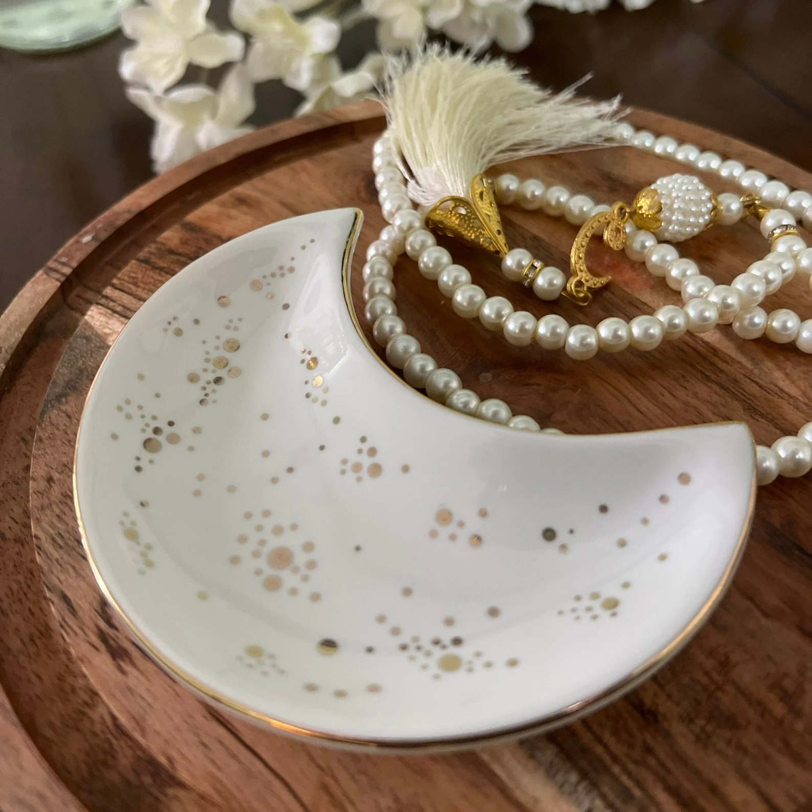 🌙 Moon shape ceramic tray with Medjool dates