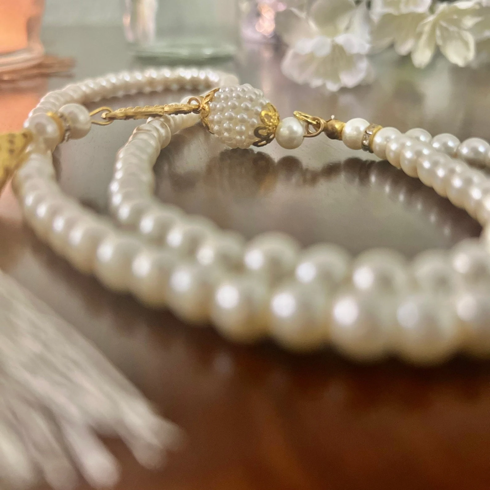 🌙 100 beads pearl tasbeeh in sheer organza pouch