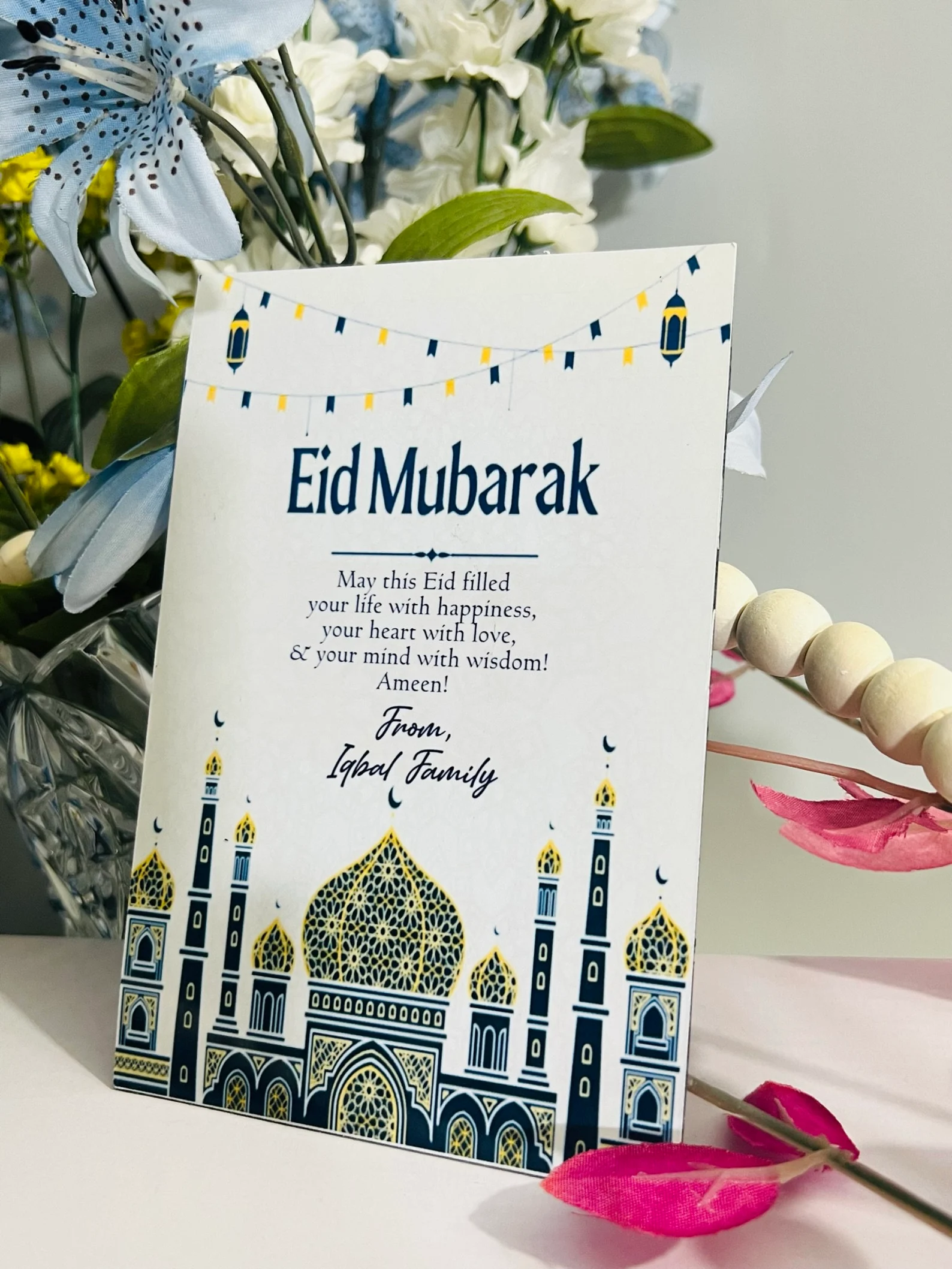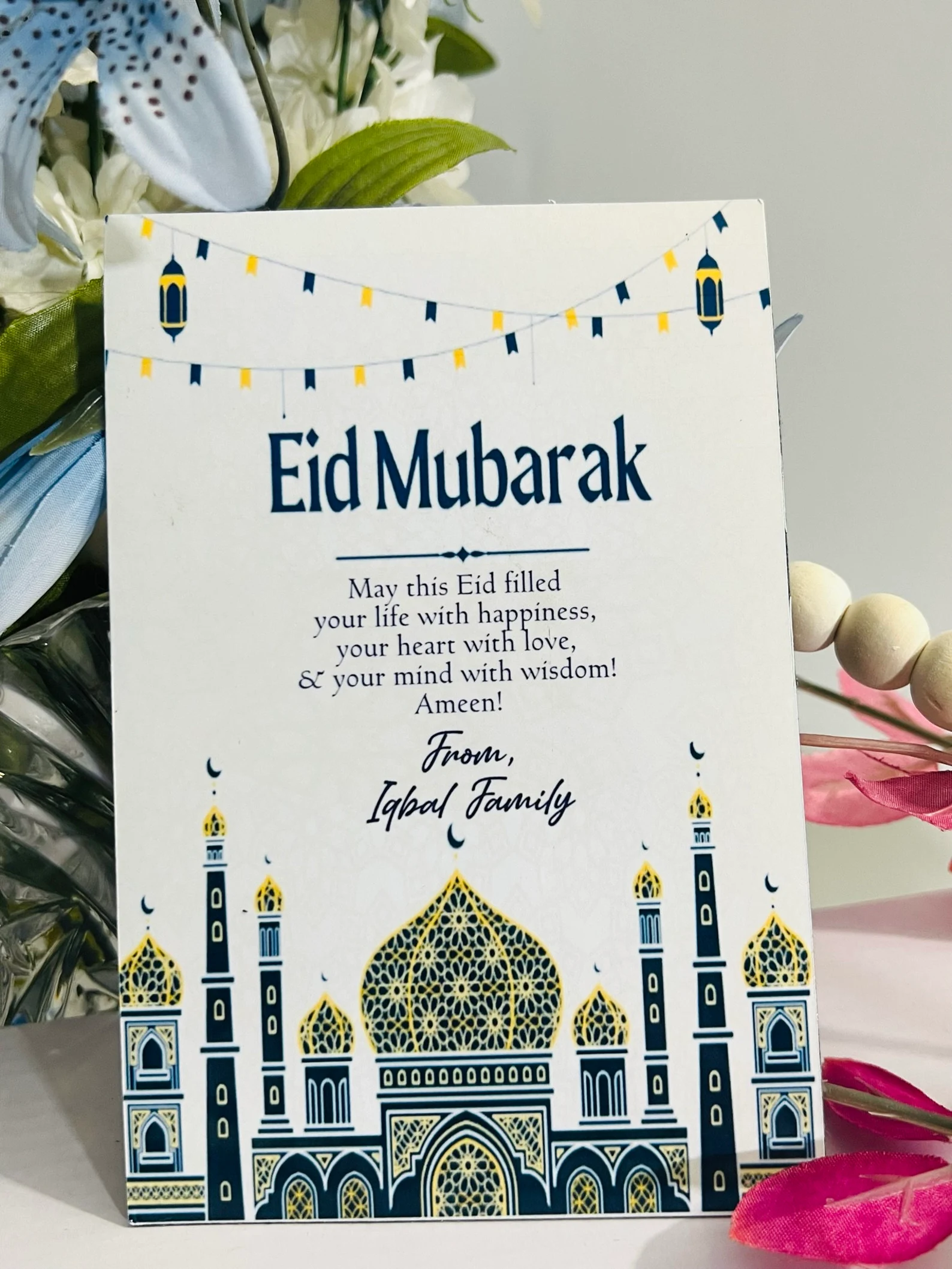 A cute way to send Eid greetings to friends & family! This beautiful magnet will help them display your greeting all year round.
